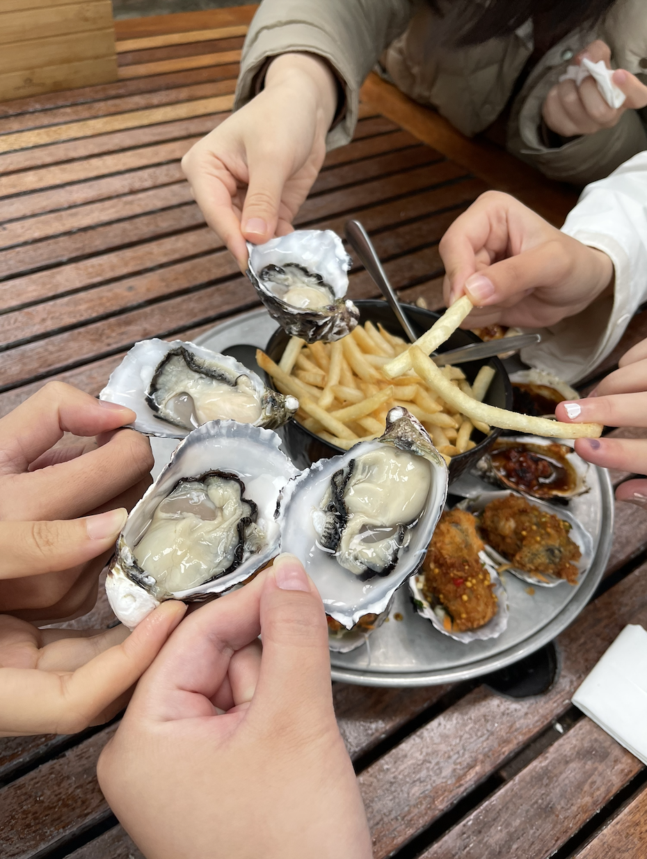 来塔斯马尼亚之前,我已经在澳大利亚各地的超市里见过许多次塔州物产——平价好吃的三文鱼、小巧美味的冷水生蚝、和水果吐司葡萄酒百搭的布里奶酪……它们的包装上面都会写着大大的“Tasmanian”字样。来塔州,不能错过生蚝。(图/朴珍珠 摄)