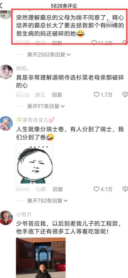 一部分家长感慨:现在可以理解,为什么道明寺的妈妈不喜欢杉菜,自己精心培育出来的豪门小少爷,长大之后放着门当户对的真千金不娶,非要去拯救那个穷苦人家的女孩。